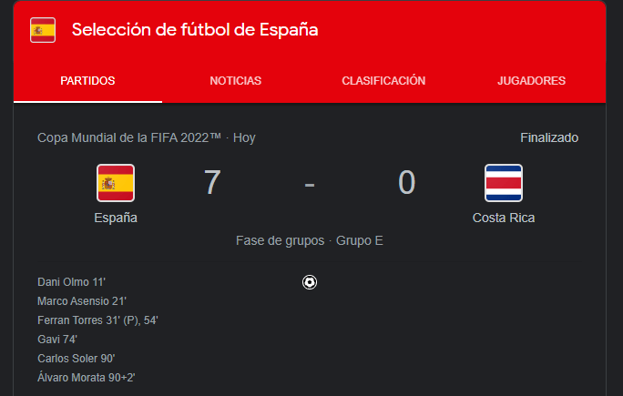 Resultado España VS Costa Rica – Mundial de Qatar 2022